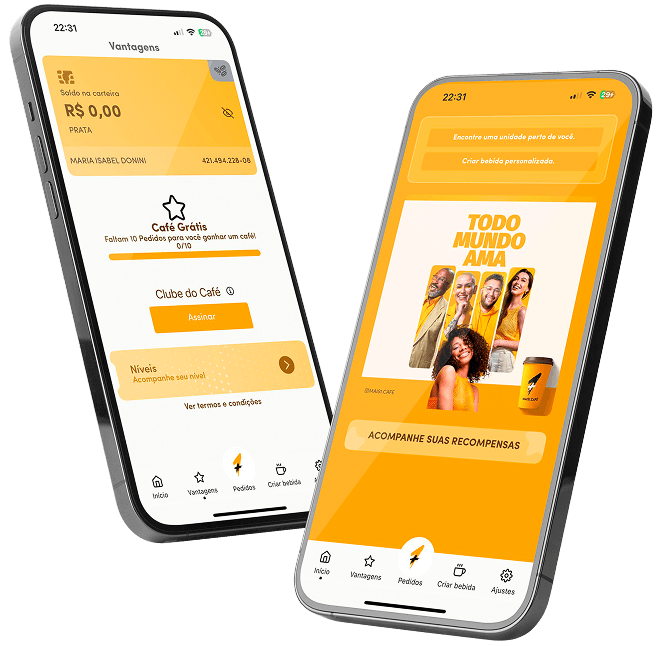 Na Mais1.Café, você que manda: coffee to go — com totens e app para pedidos rápidos, ou a experiência completa em nossas lojas, com espaços pensados para você.
